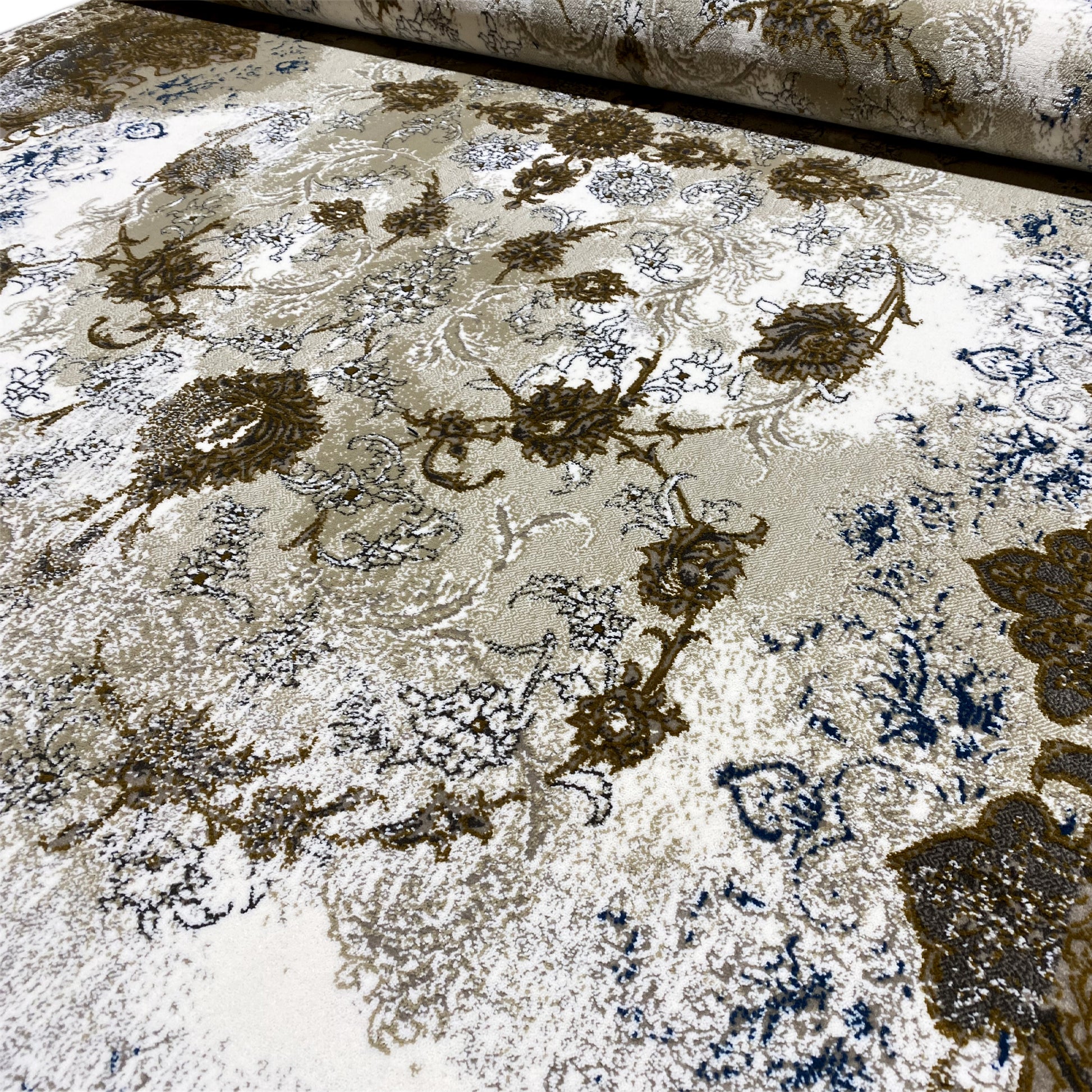 Add a touch of timeless charm to your home with the Canyon Whisper rug. Its beautiful cream-colored field is adorned with a unique, stylized pattern and framed by a detailed border in earthy brown and blue tones. The subtly faded finish gives it a vintage touch. Made from durable 100% heat-treated acrylic, this soft rug is perfect for high-traffic areas, combining exquisite style with modern resilience. The generous size of 170x240cm is ideal for adding a sophisticated focal point to your living or bedroom.