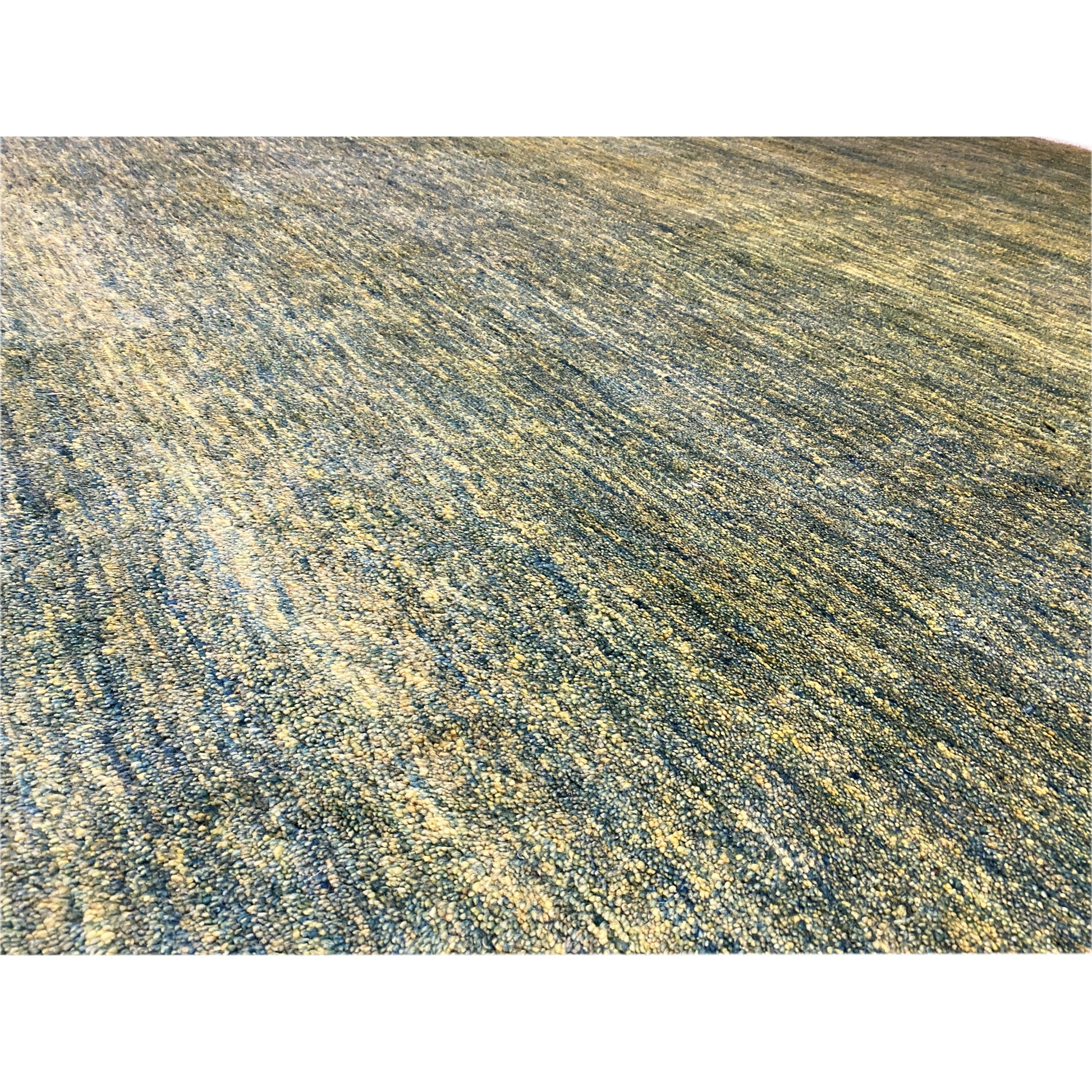 This impressive, hand-knotted Gabbeh rug measuring 284x196cm is made from hand-spun, plant-dyed wool. Its rich green with natural variations (Abrash) ranges from deep moss green to fresh yellow-green, giving any room an organic and calming atmosphere. The simple, solid color design with subtle stripes through the wool texture makes it a perfect accent for minimalist, modern, or nature-inspired decor styles.