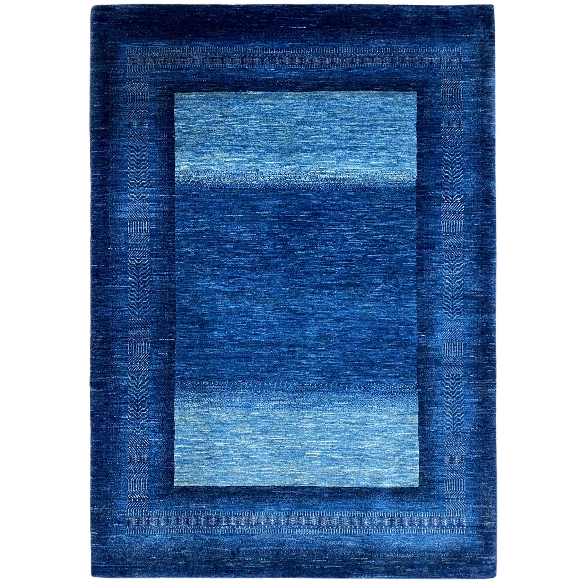 This impressive Luri Gabbeh rug, hand-knotted from hand-spun, plant-dyed wool, features fascinating shades of blue with a striking rectangular pattern and subtle stripes that create a calming aesthetic. Measuring 214x164cm, it is an excellent addition to various interior styles, from cool-modern to a relaxed beach house look. The masterful craftsmanship and natural materials guarantee not only exceptional durability but also a unique work of art that brings comfort and style to your home.