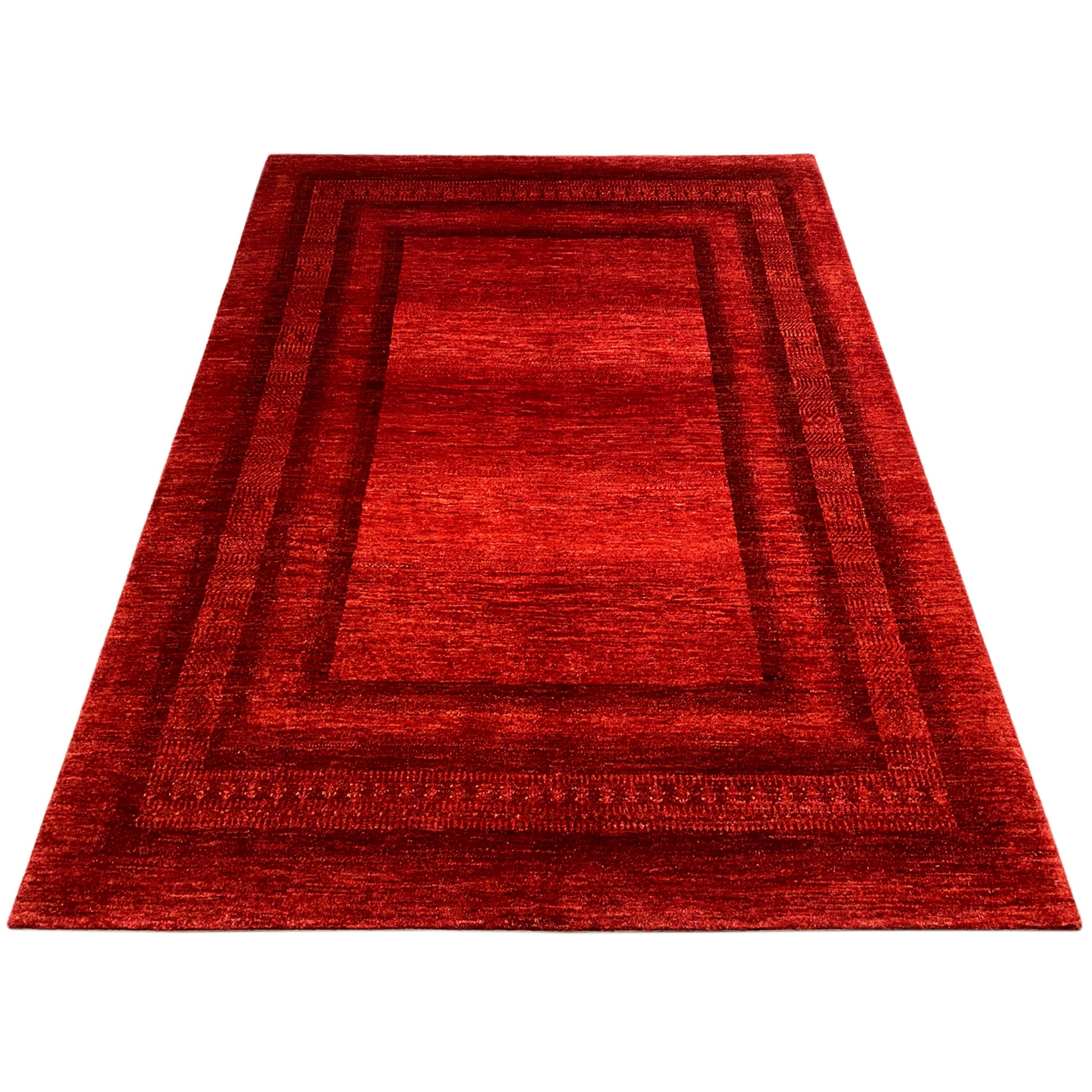 This exclusive Luri Gabbeh rug, hand-knotted from hand-spun, plant-dyed wool, presents itself in a deep red tone with a subtle geometric pattern. With its dimensions of 218x156cm, it is an ideal addition to various interior styles, from rustic to modern, creating a warm, inviting atmosphere. Its unique craftsmanship and high-quality materials ensure not only durability but also a distinctive flair in any room.