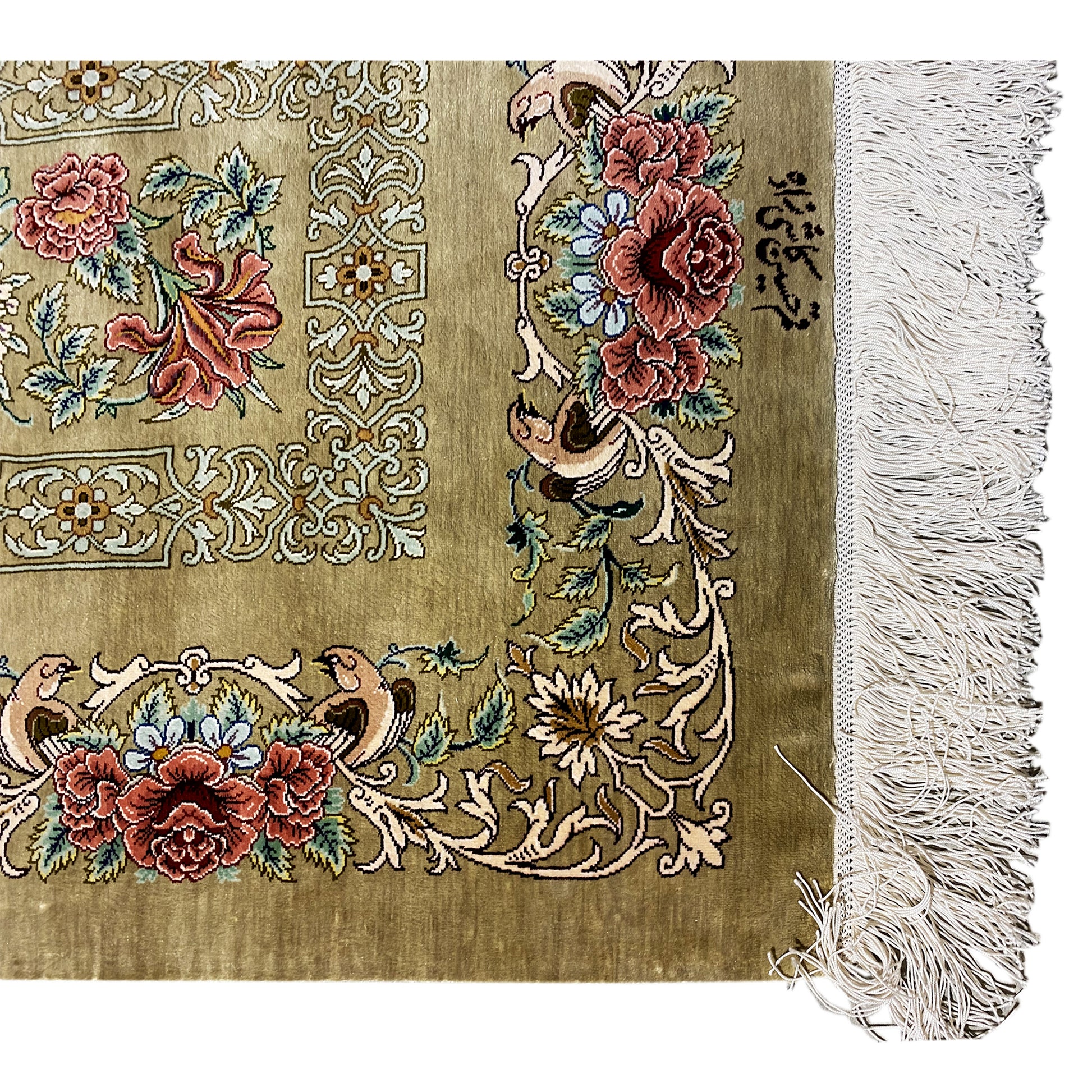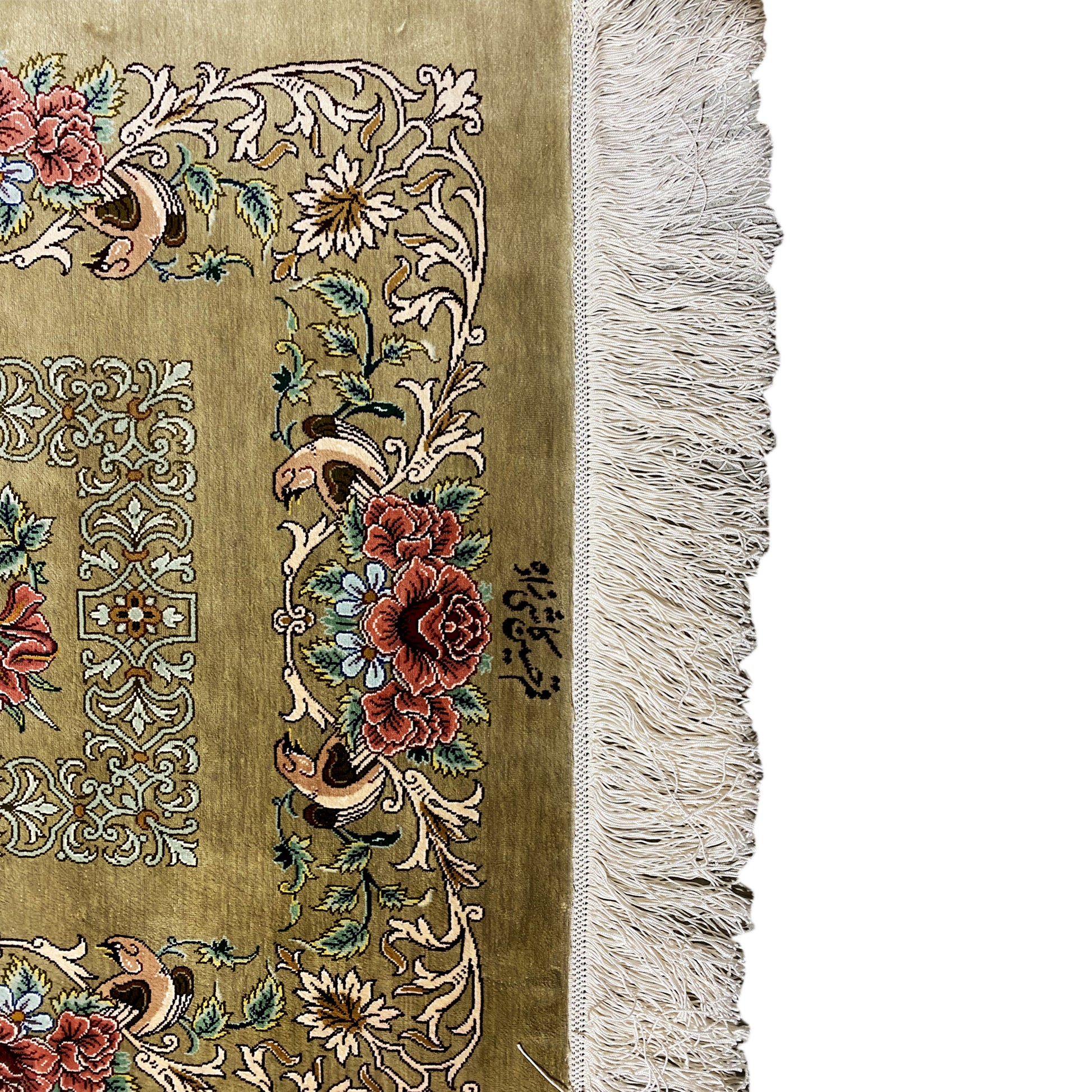 Ghom carpets are knotted in Central Persia in the city of Ghom. A silk carpet from Ghom impresses even collectors of Persian carpet art. The material of the carpets is silk, which makes them thin and dense. They are among the finest and most noble Persian carpets and captivate with their unique shine. Each carpet is a unique piece.
