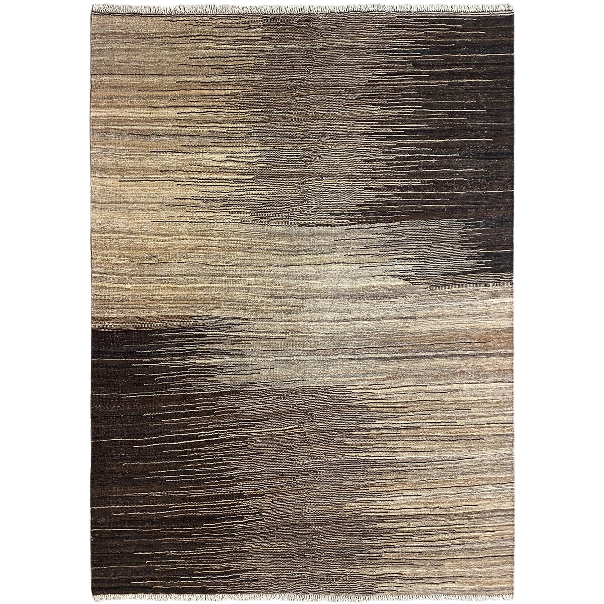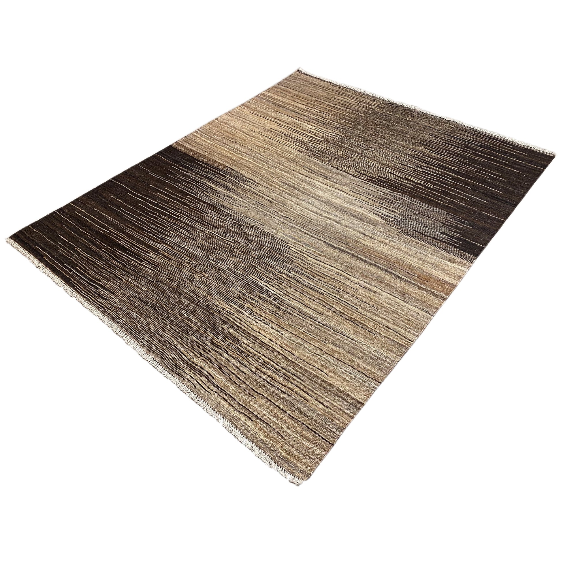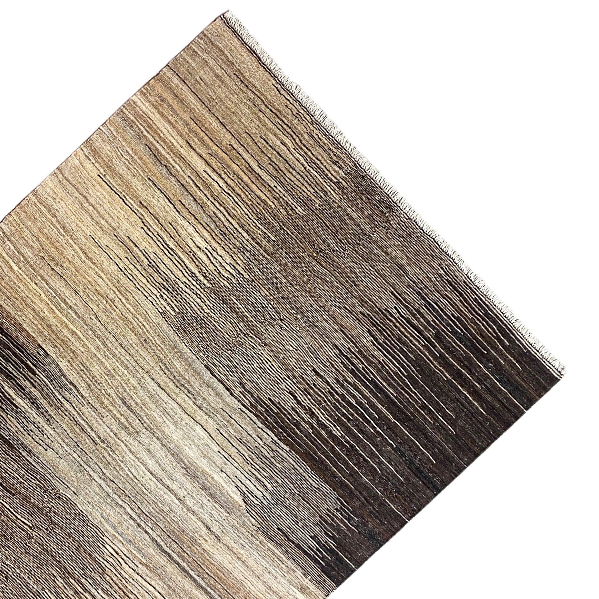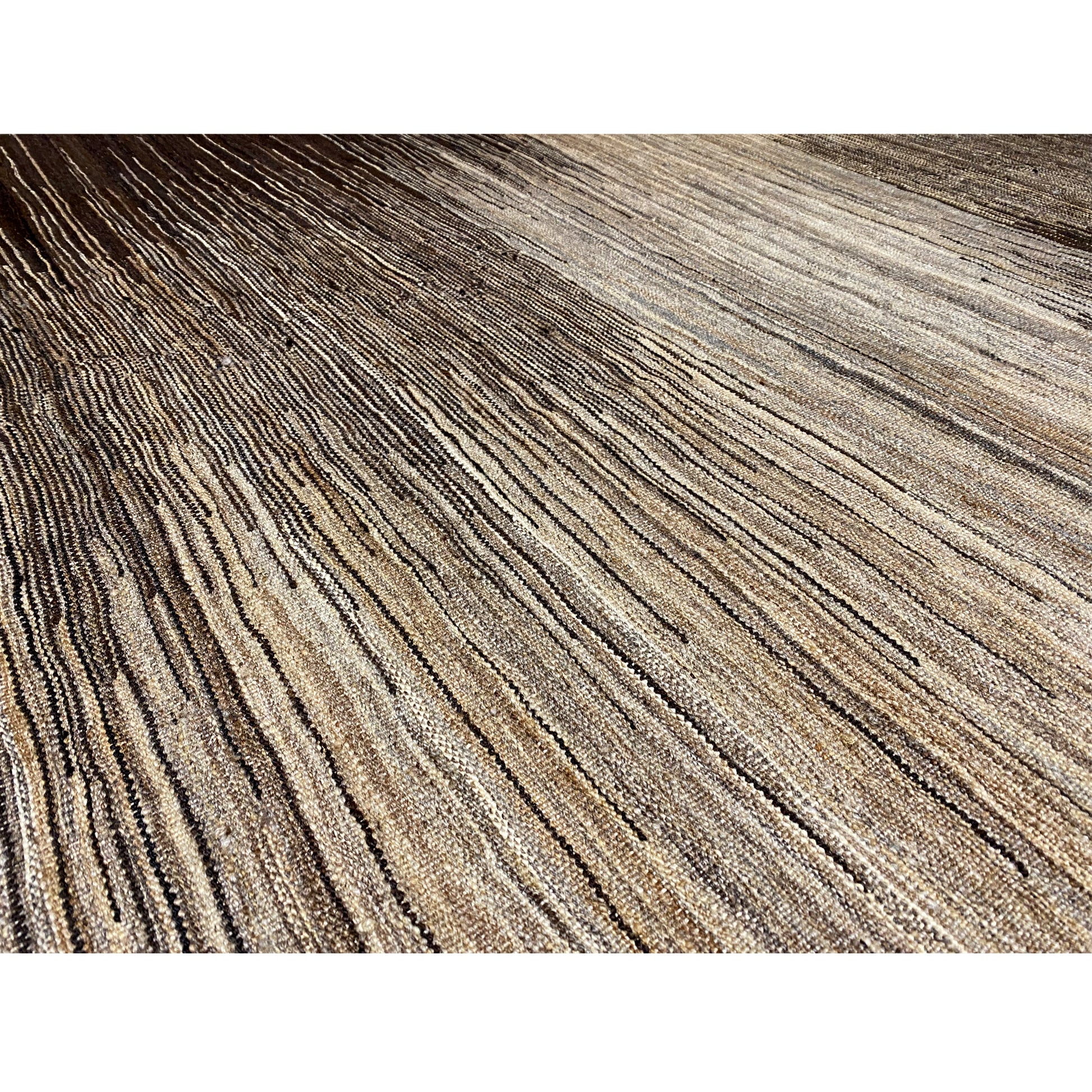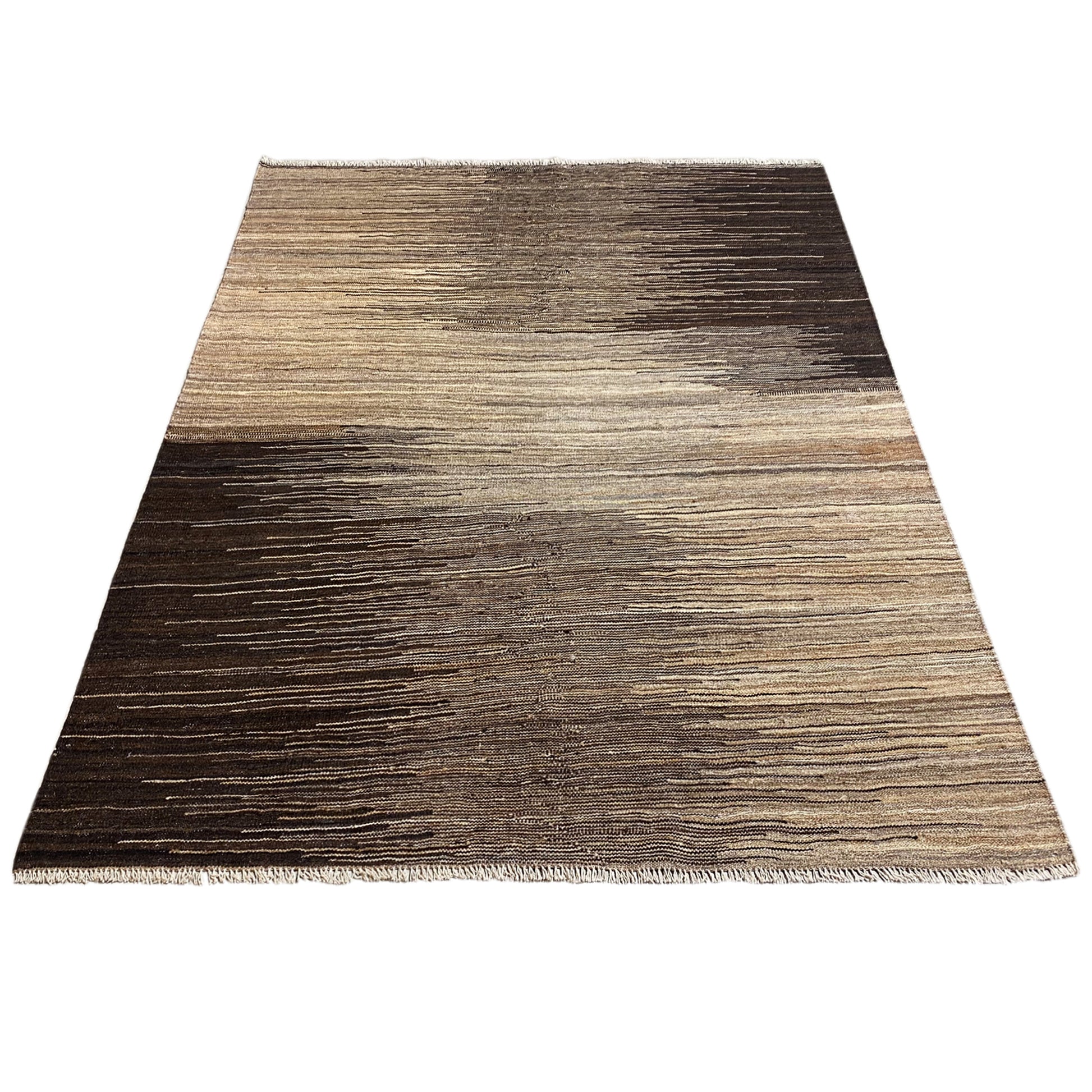 This impressive handwoven Kelim Qashqai made from hand-spun wool features a unique, abstract striped pattern in natural brown and beige tones. With a size of 192x150 cm, this versatile rug is an ideal addition to various interior styles such as Modern, Boho, or Rustic. It offers not only a soft, foot-friendly surface but also the durability and authentic appeal of genuine craftsmanship, perfect for adding a natural and stylish touch to any room.