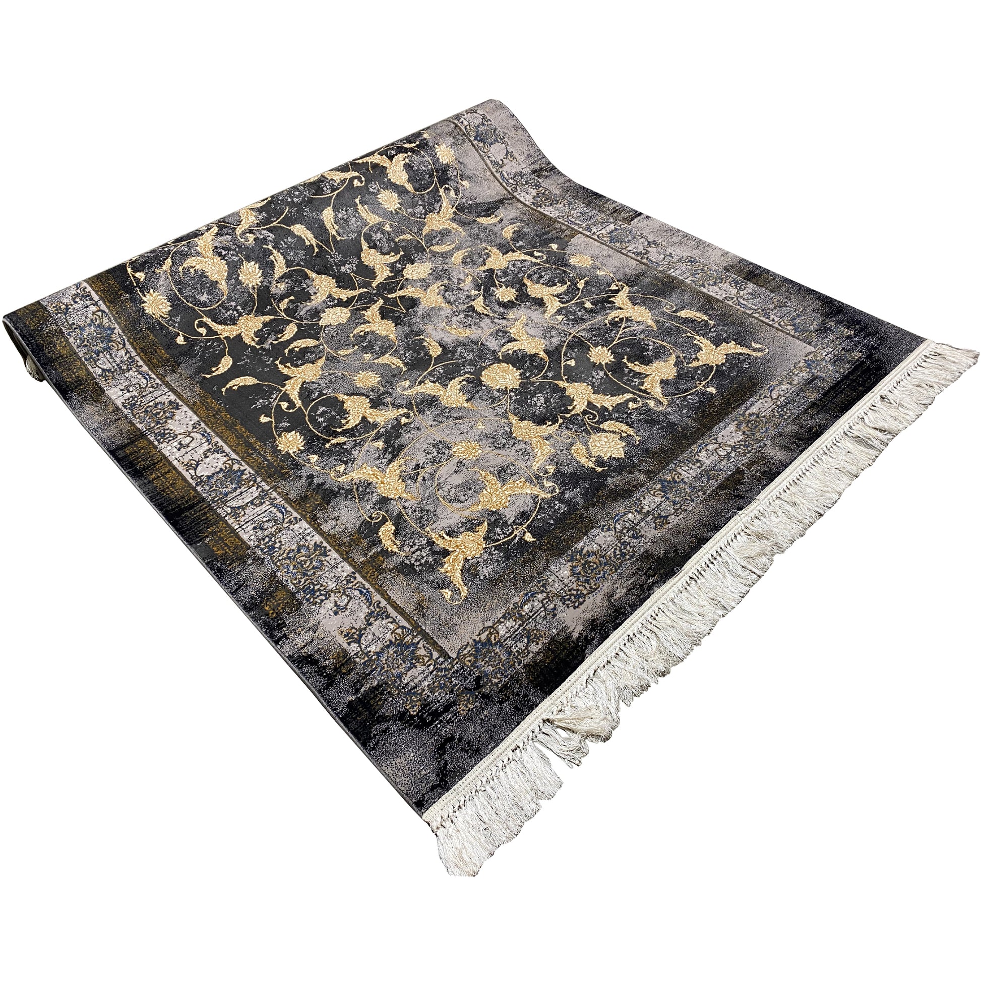 Add a touch of elegance to your home with our woven rug "Kenza". With its stylish vintage design and modern accents in gold and black, this rug harmoniously fits into any decor. Made from 100% polypropylene, it is not only easy to care for and durable but also ideal for high-traffic areas. The floral pattern in noble gold tones on a dark background gives the 160x230cm rug a luxurious appearance. Experience comfort and style, perfectly suited for your living room or bedroom.
