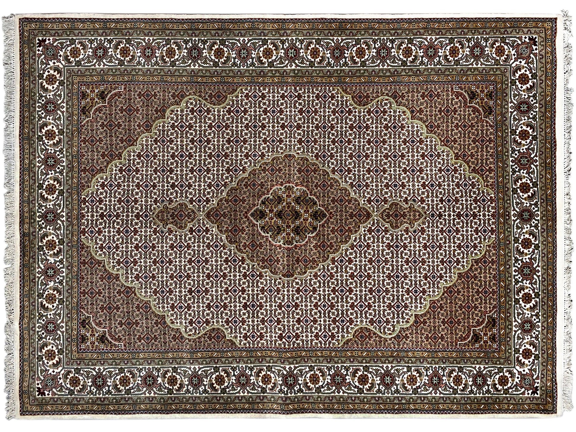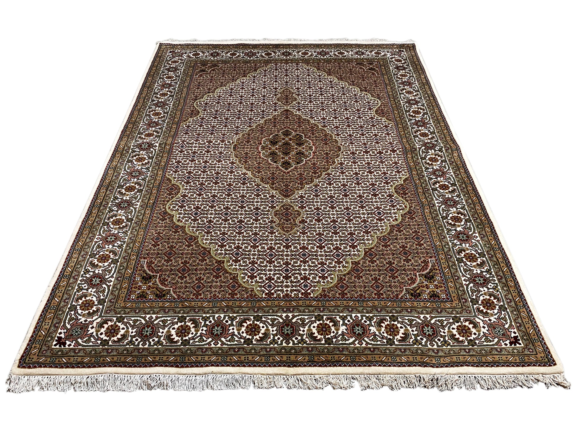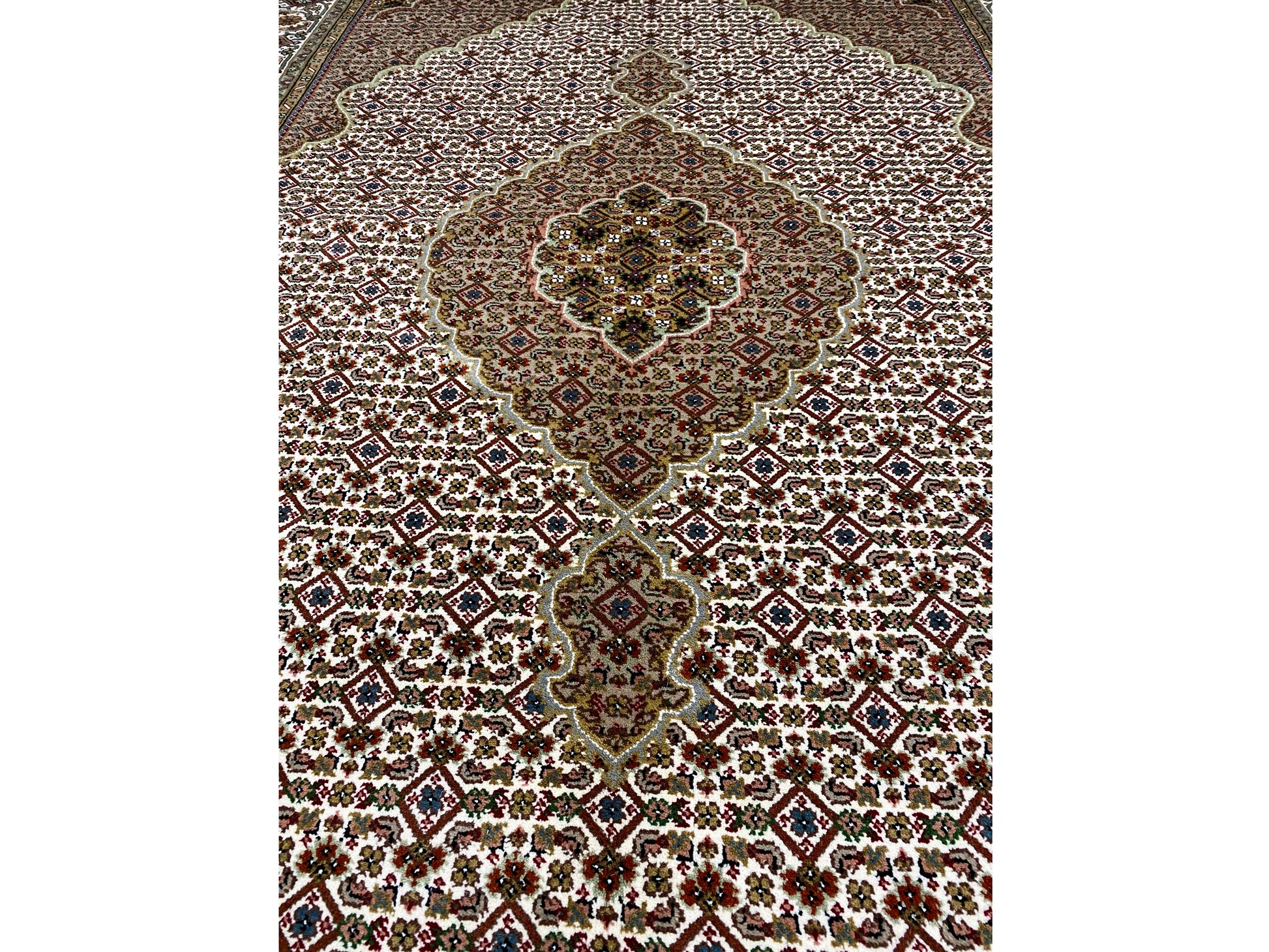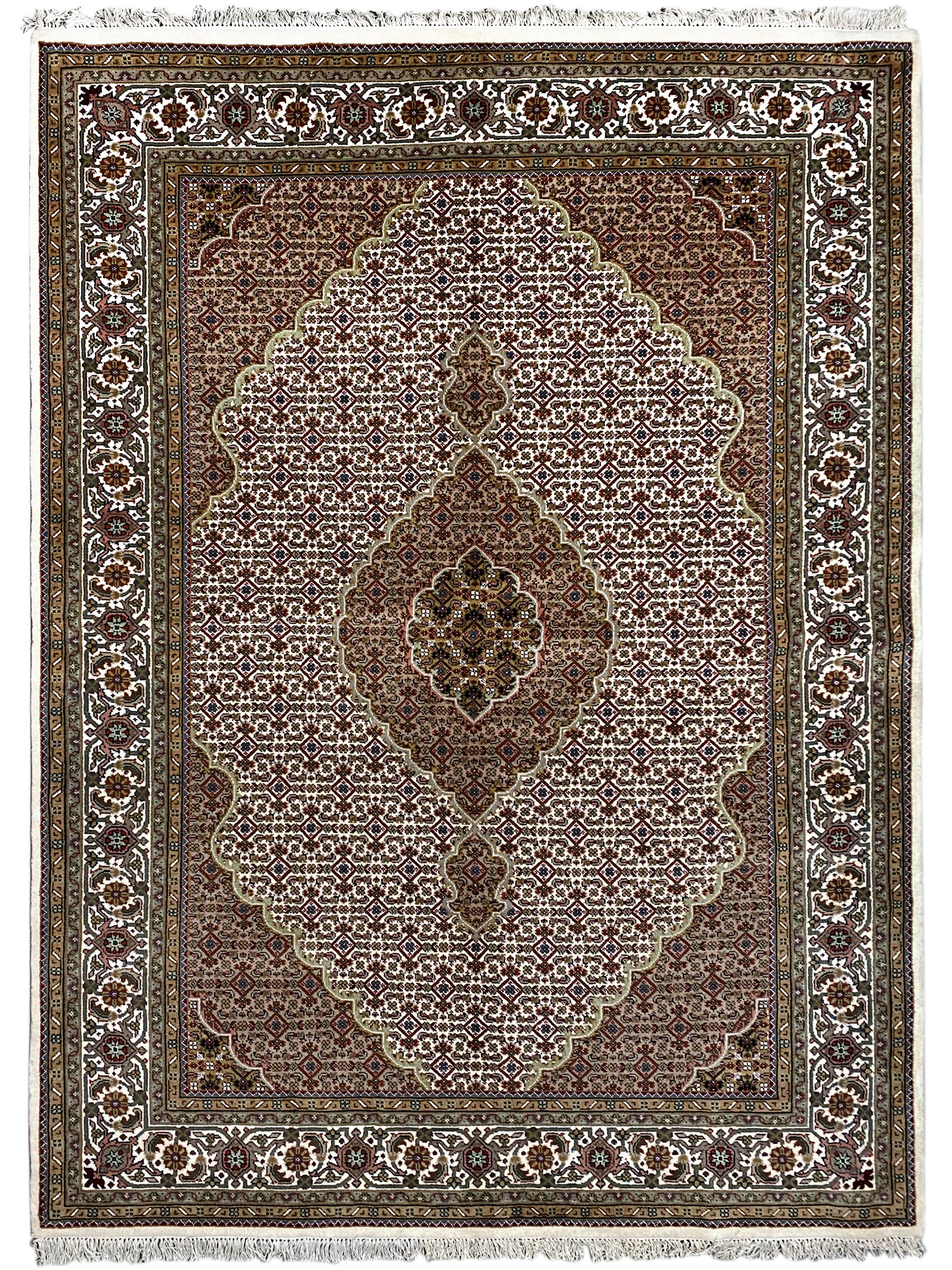 Originally, the Tabriz Mahi comes from Persia. Nowadays, however, these carpets are also hand-knotted in India with the same quality standards. Our Mahi are high-quality, noble carpets woven from fine wool. The carpets have strong, clear, and deep colors and are very durable due to their good workmanship.