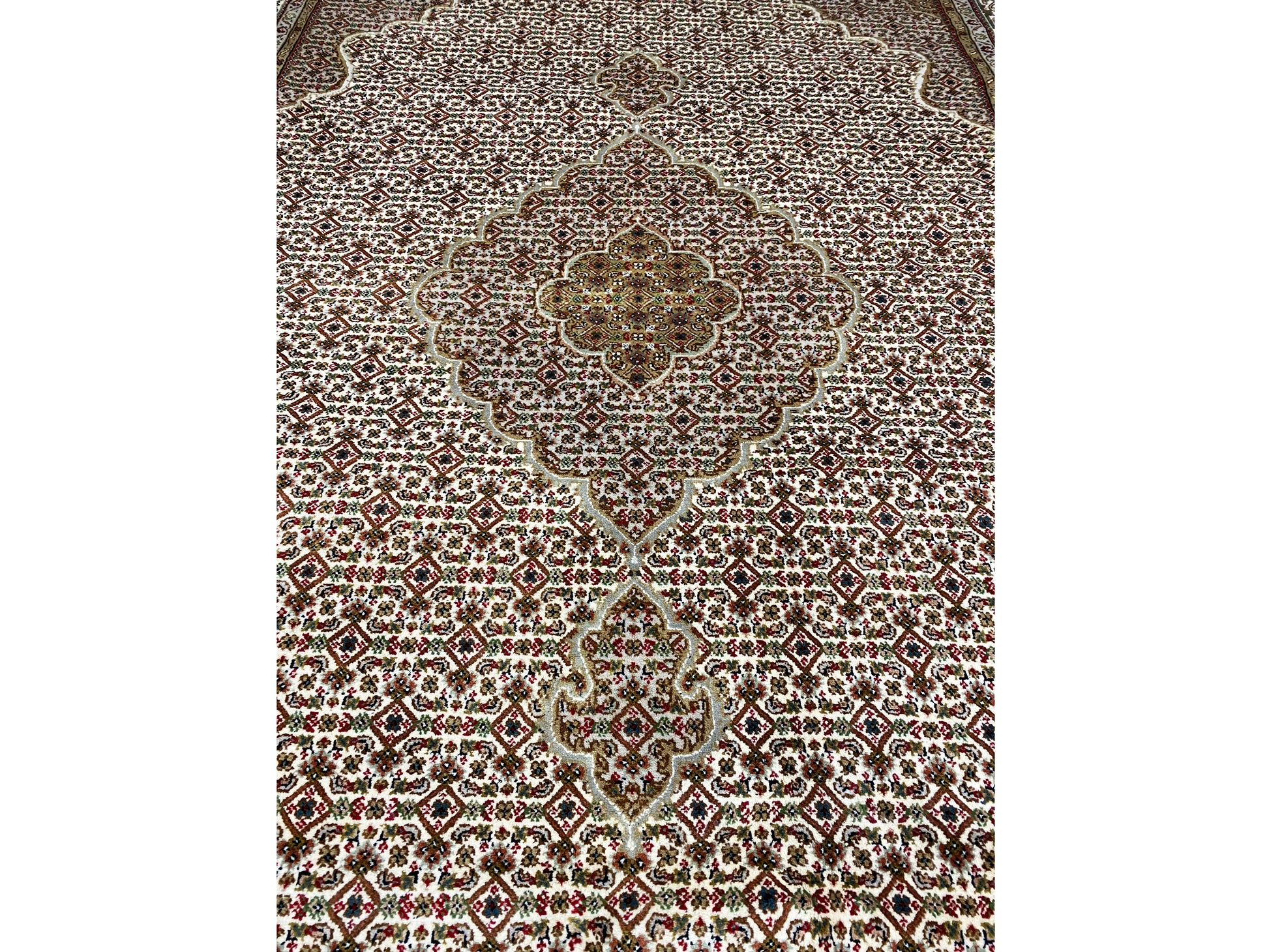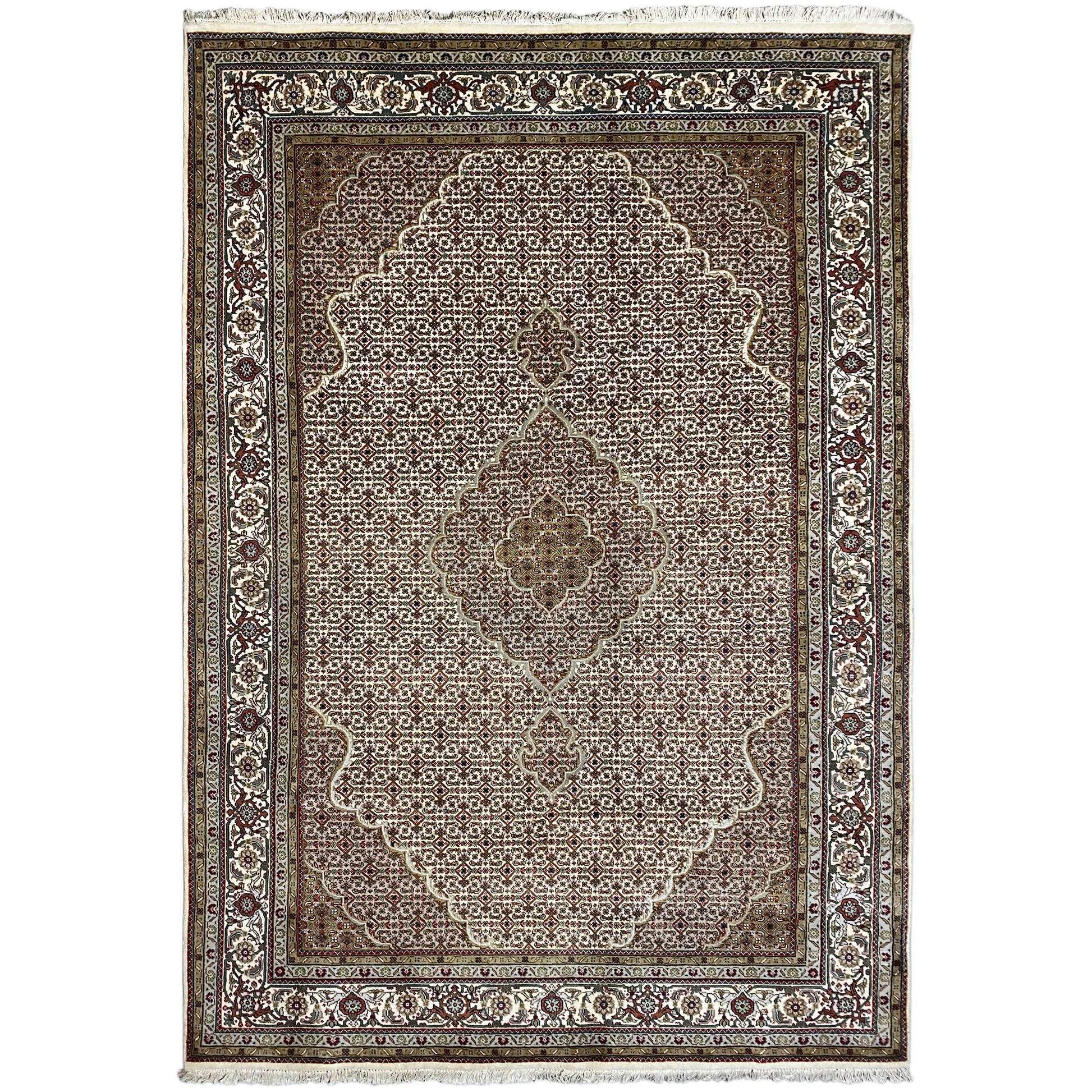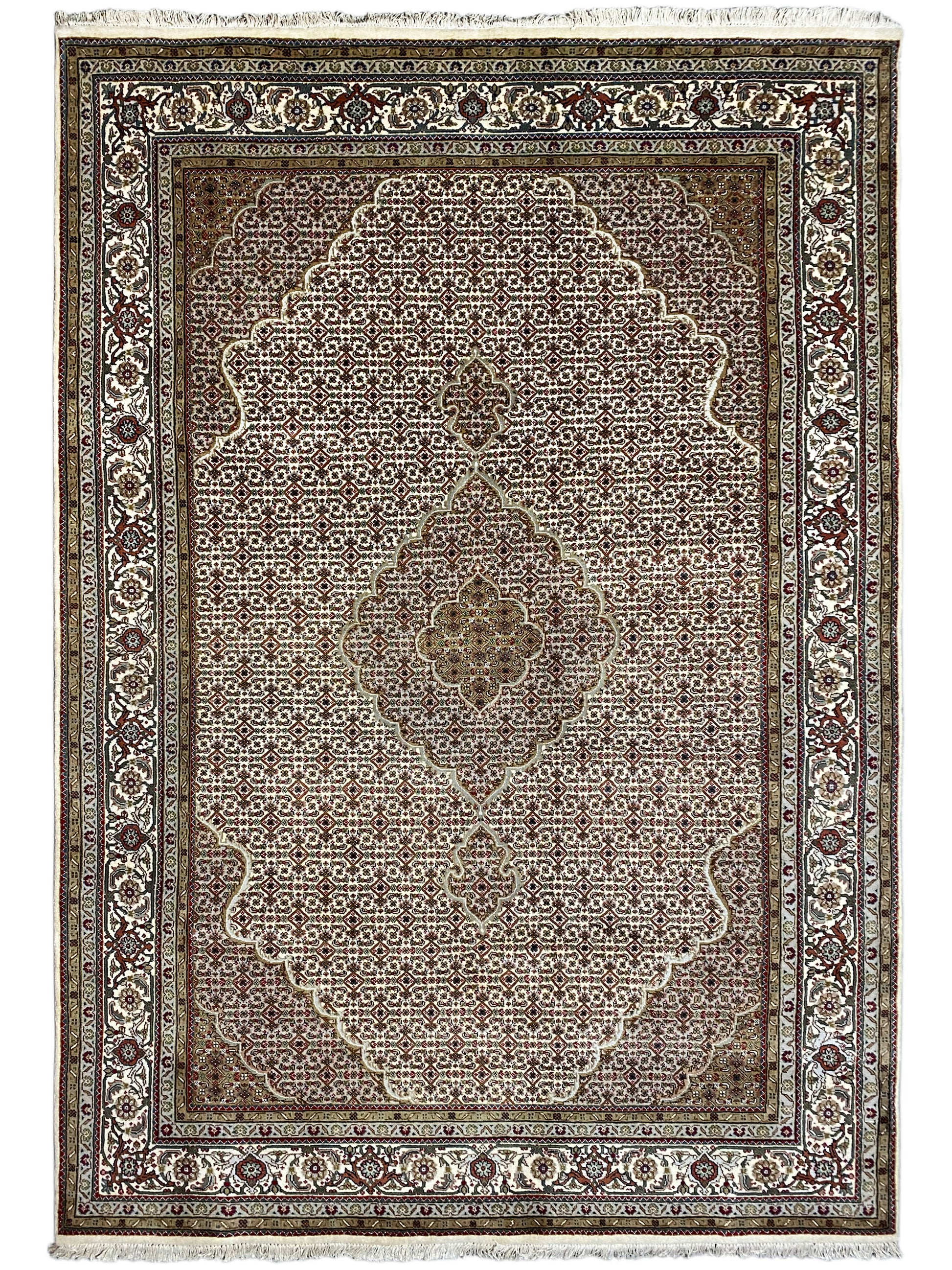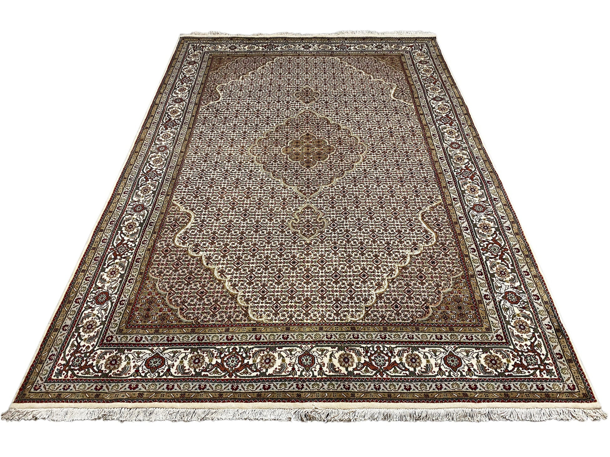 Originally, the Tabriz Mahi comes from Persia. Nowadays, however, these carpets are also hand-knotted in India with the same quality standards. Our Mahi are high-quality, noble carpets woven from fine wool. The carpets have strong, clear, and deep colors and are very durable due to their good workmanship.