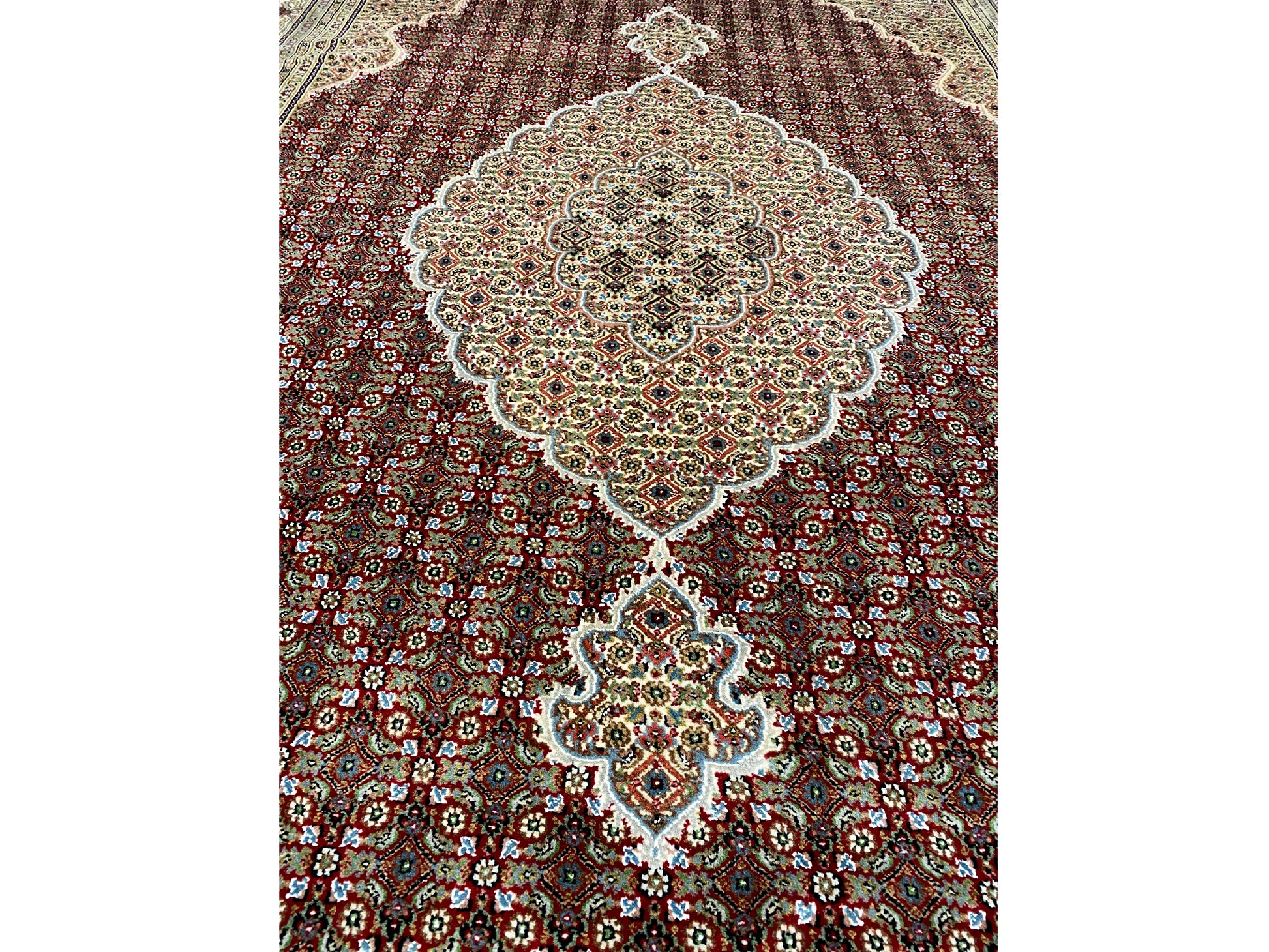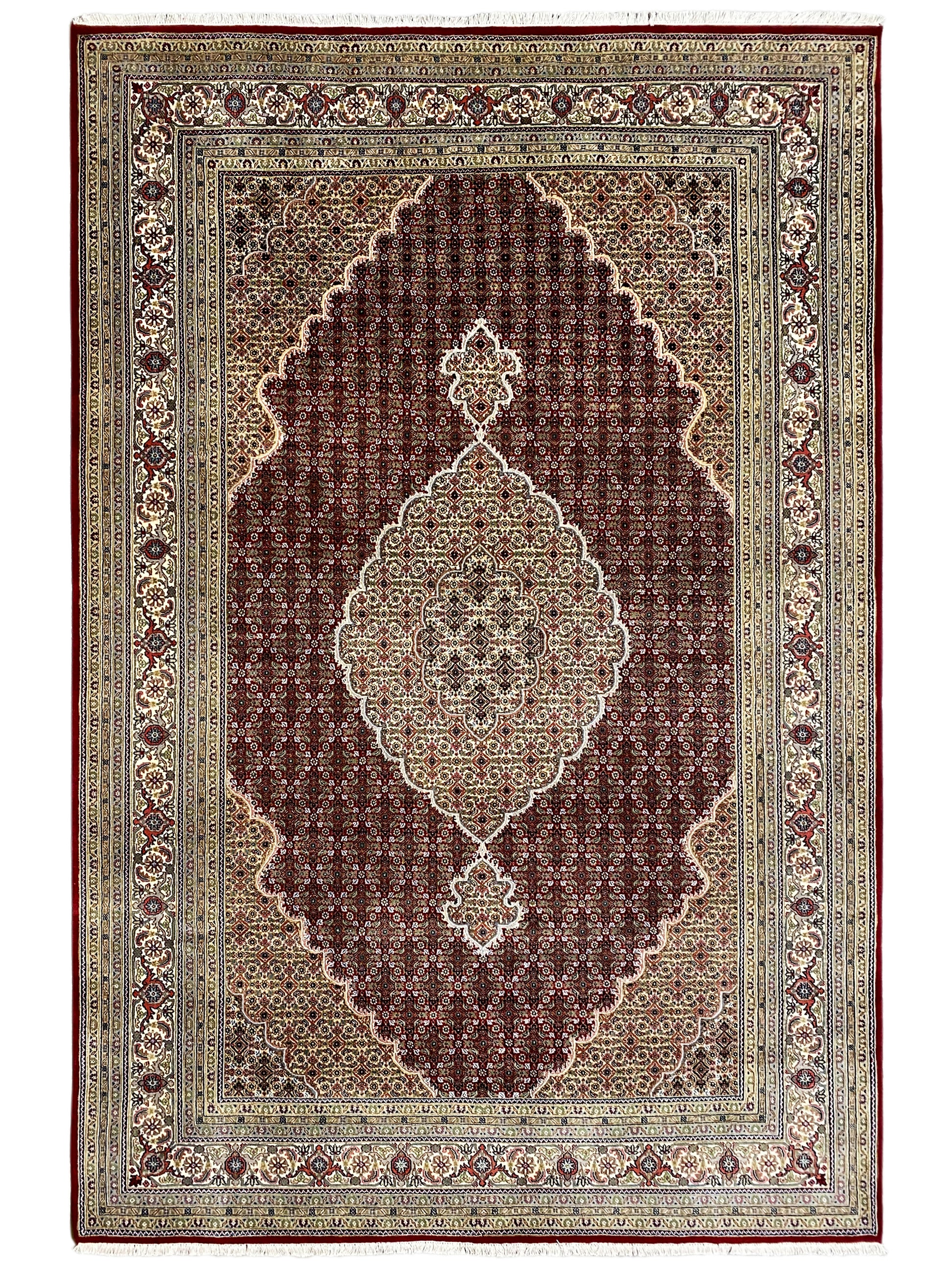 Originally, the Tabriz Mahi comes from Persia. Nowadays, however, these carpets are also hand-knotted in India with the same quality standards. Our Mahi are high-quality, noble carpets woven from fine wool. The carpets have strong, clear, and deep colors and are very durable due to their good workmanship.