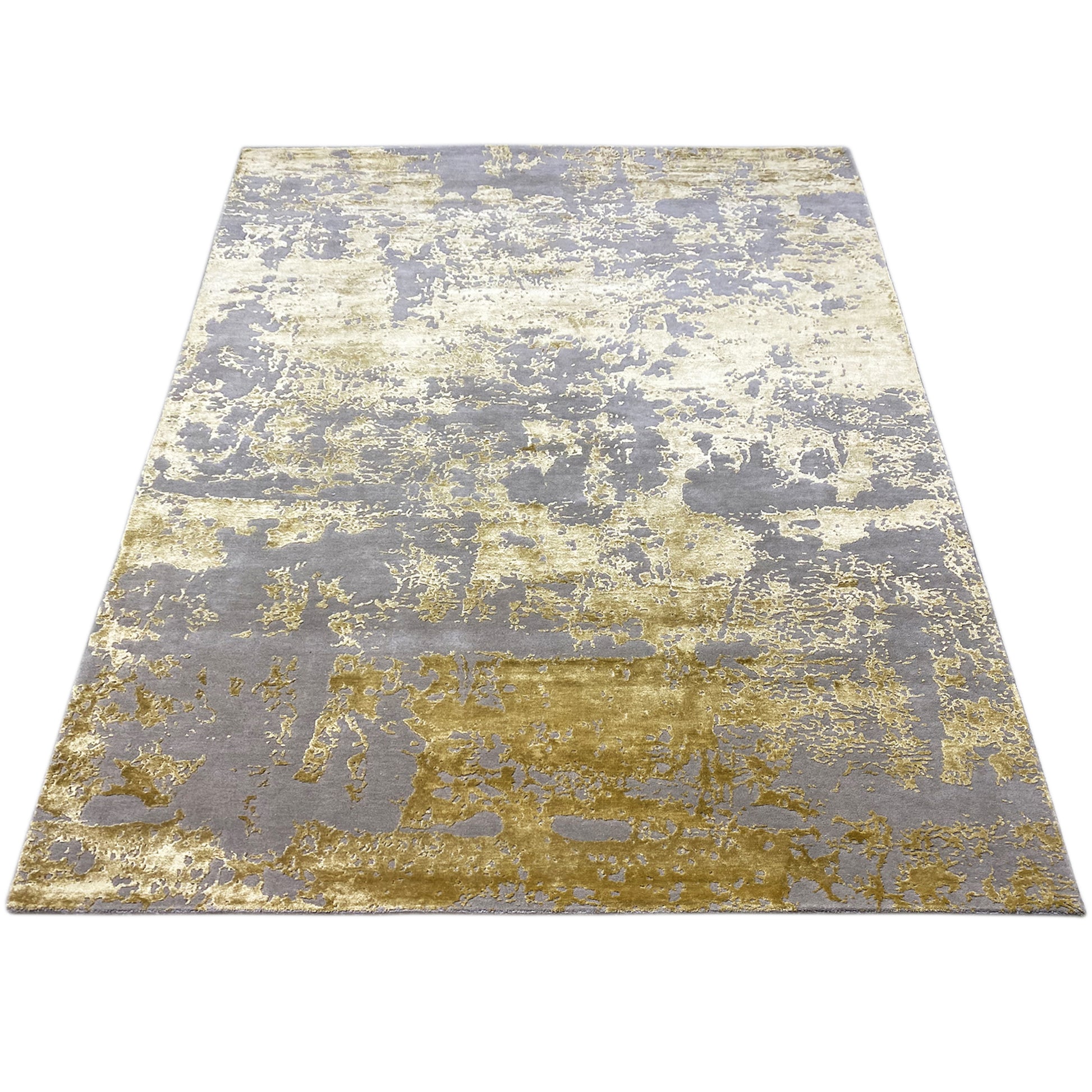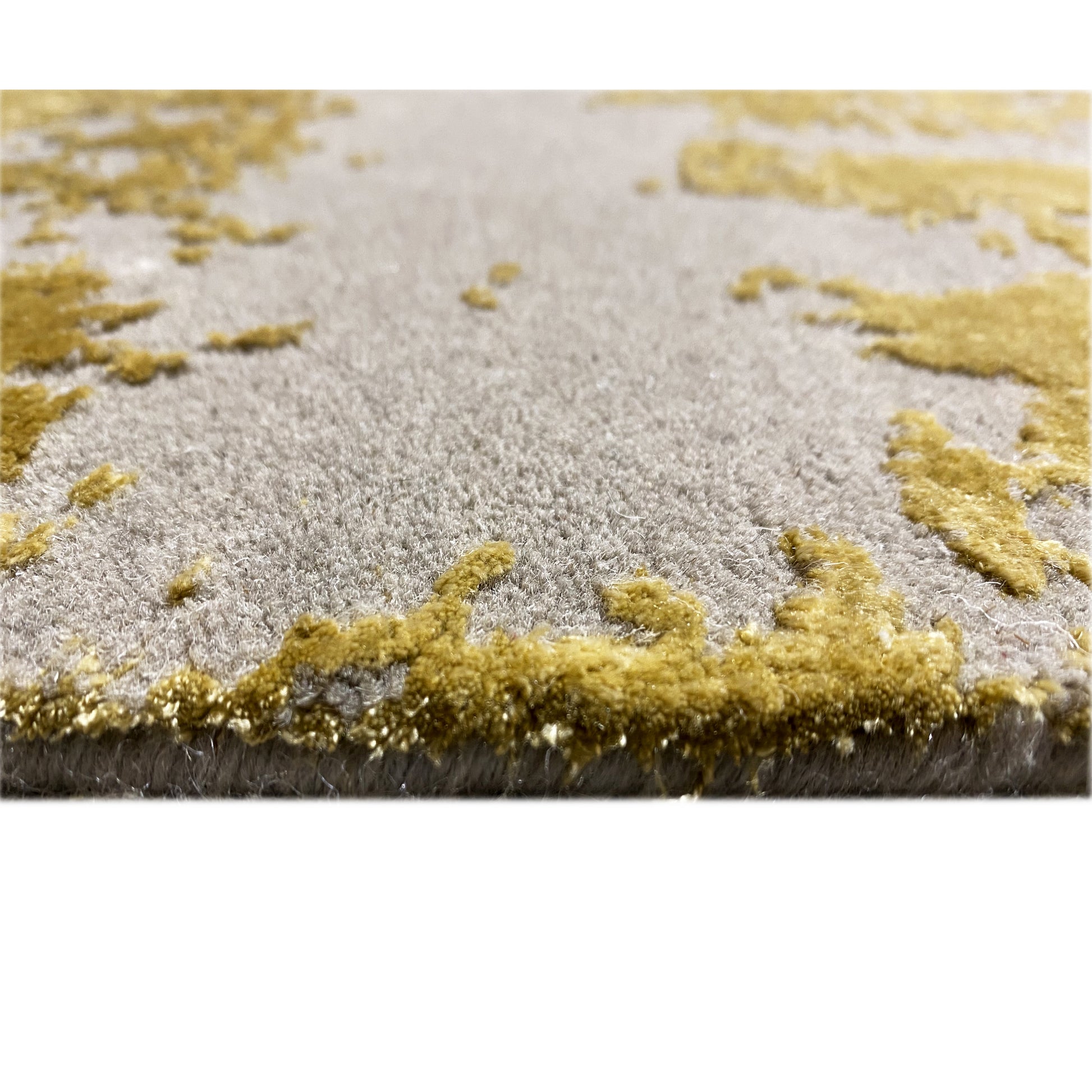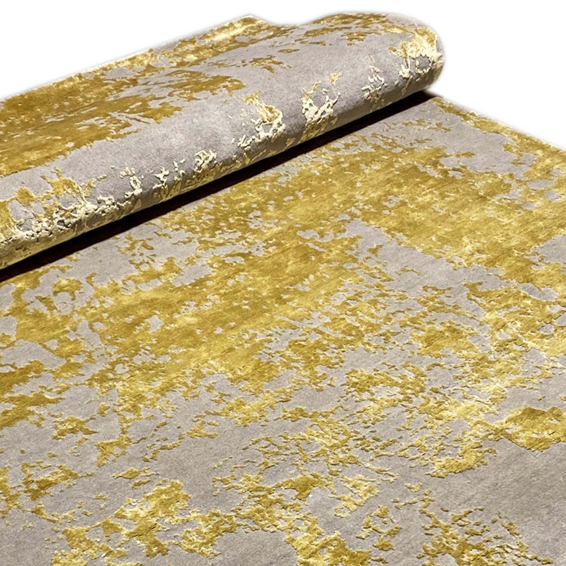 This hand-knotted rug made from a blend of hand-spun wool and viscose is a stylish highlight for any home. The rug in a modern decorative style features an abstract pattern reminiscent of a brushstroke effect, in warm tones like beige, yellow, and gray. With its size of 241x170 cm, it is perfect for giving your living room a unique and cozy atmosphere. The soft surface and high-quality craftsmanship ensure comfort and durability.