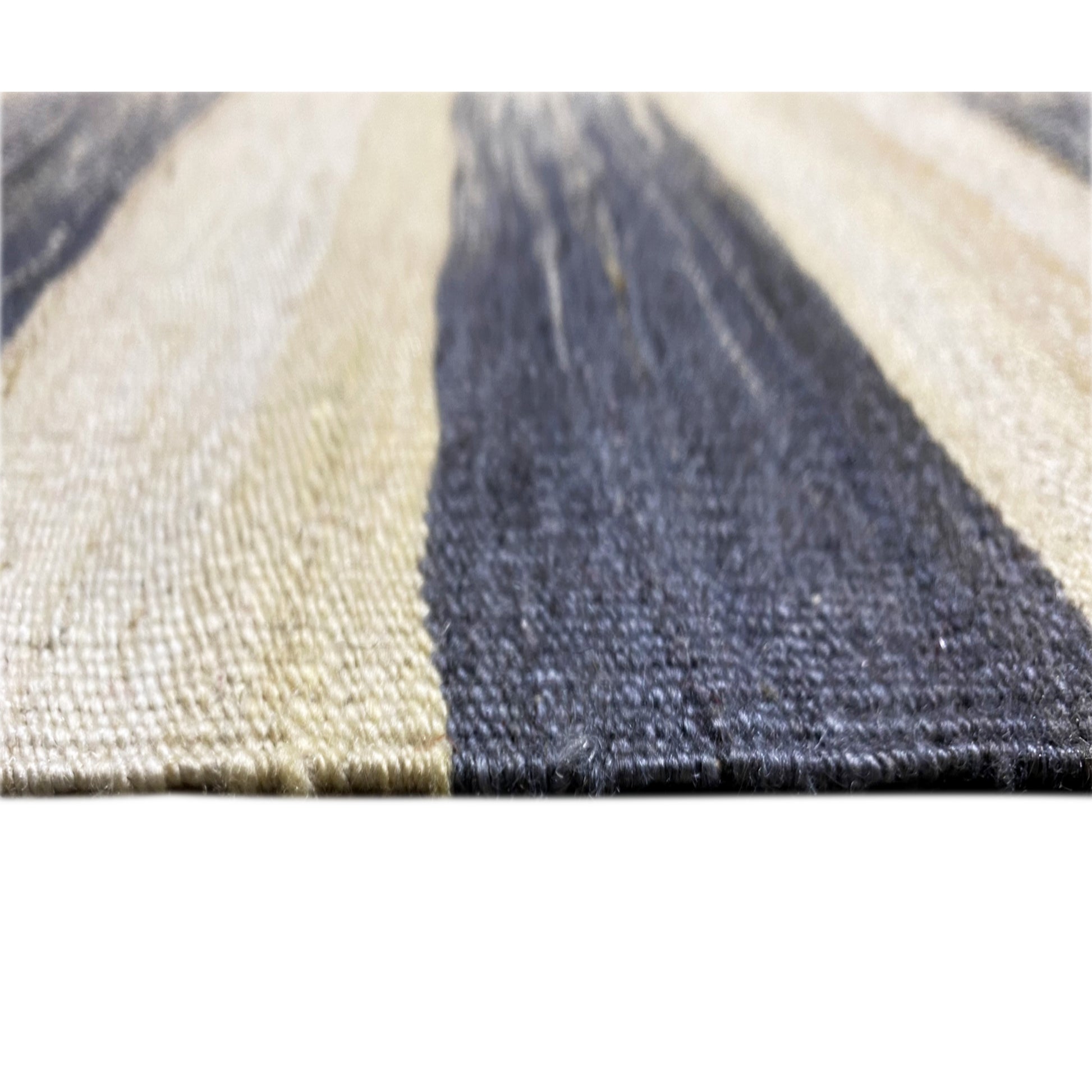 This modern flatwoven kilim, measuring 315x198 cm, is a stylish addition to any interior. Made from high-quality wool with a cotton warp, it offers durability and a pleasant feel. Its unique striped pattern in beige and dark blue perfectly suits a modern or minimalist decor style, creating a calming yet expressive atmosphere. Ideal for adding contemporary elegance to any room.