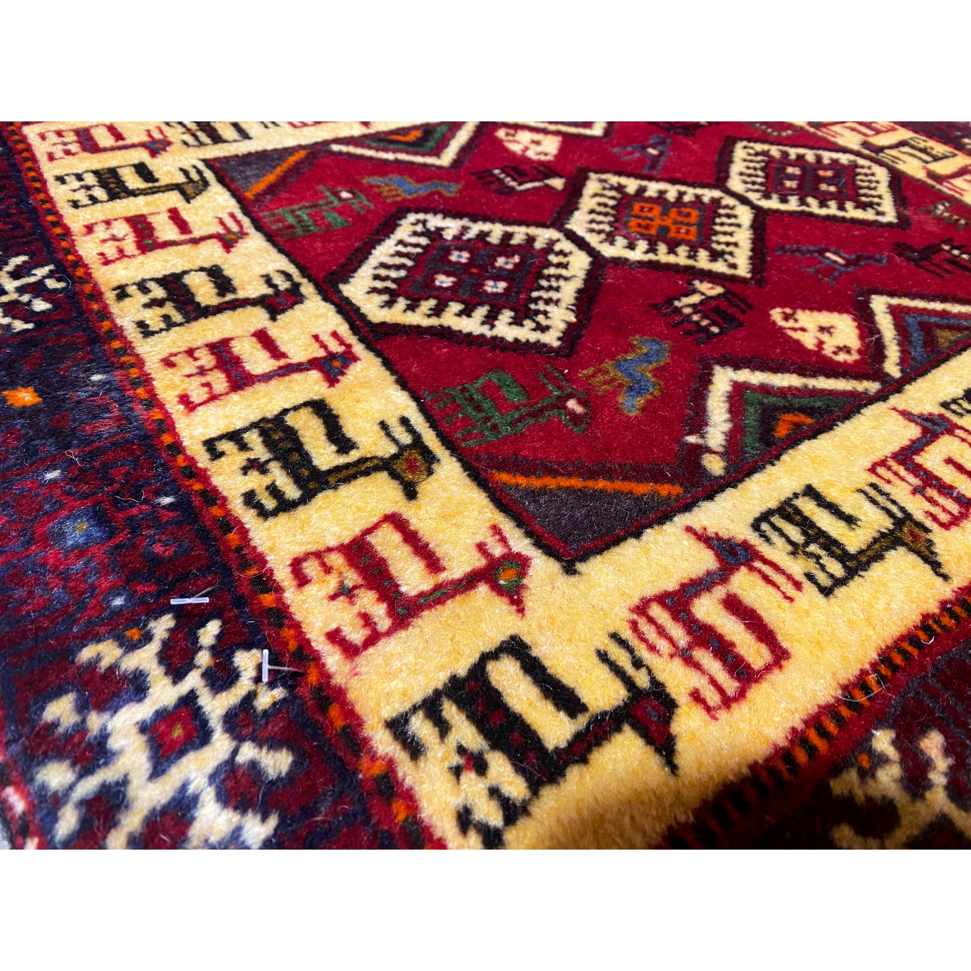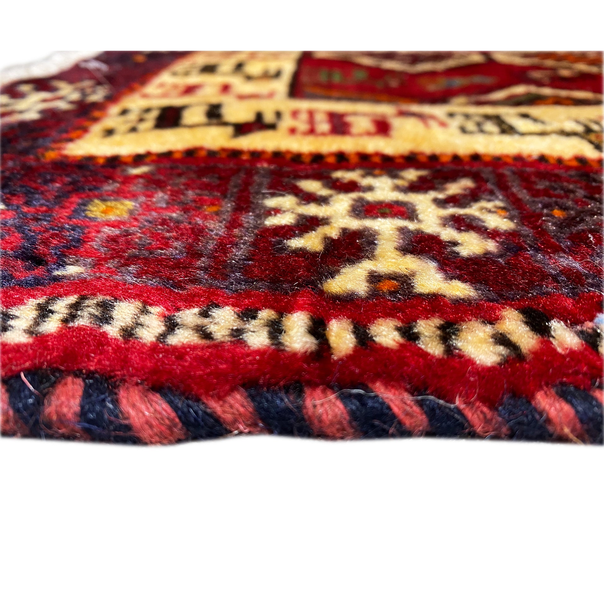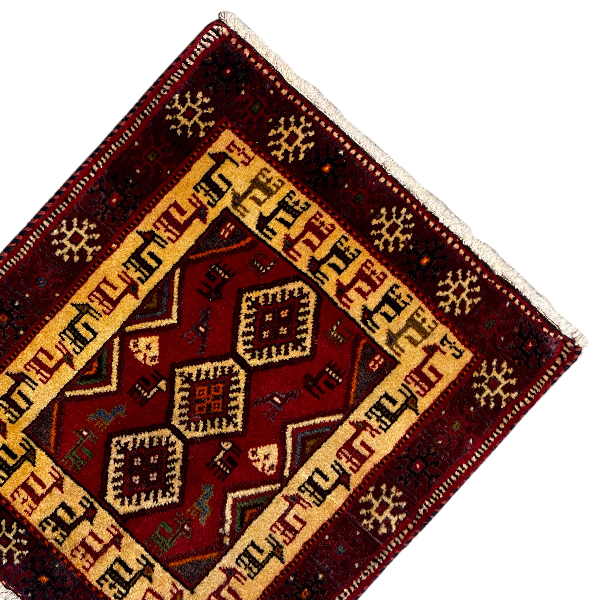 This exquisite, hand-knotted Poshti rug in warm red and bright beige is an authentic example of the craftsmanship of southern Iranian nomadic peoples. In particular, the rugs woven by the "Tork" tribal group are lovingly referred to as "Torkey." Measuring 66x58 cm, this piece is ideal for adding a touch of traditional decor and coziness to any room, accented by a unique animal pattern. The sturdy craftsmanship of wool and cotton, along with the vibrant colors, make it a durable and stylish accent.