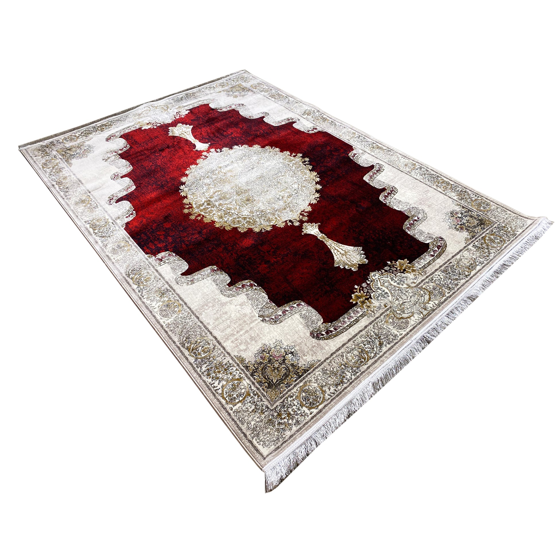 Transform your space with this striking and beautiful classic rug. The eye-catching red field and the artistic cream medallion create a luxurious focal point, surrounded by an intricately designed border with a unique shape. Made from 100% heat-set acrylic, this soft and durable rug is perfect for adding warmth and elegance to your living or dining area. The generous size of 170x240cm is ideal for defining a room and making a statement.