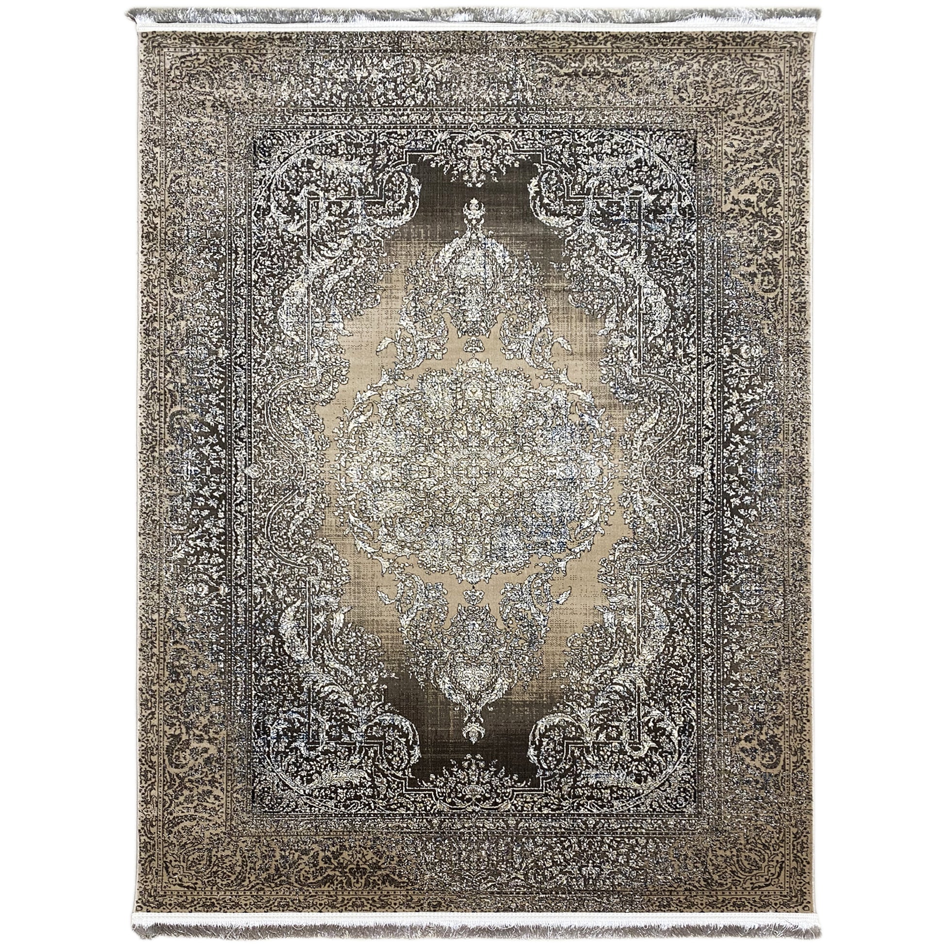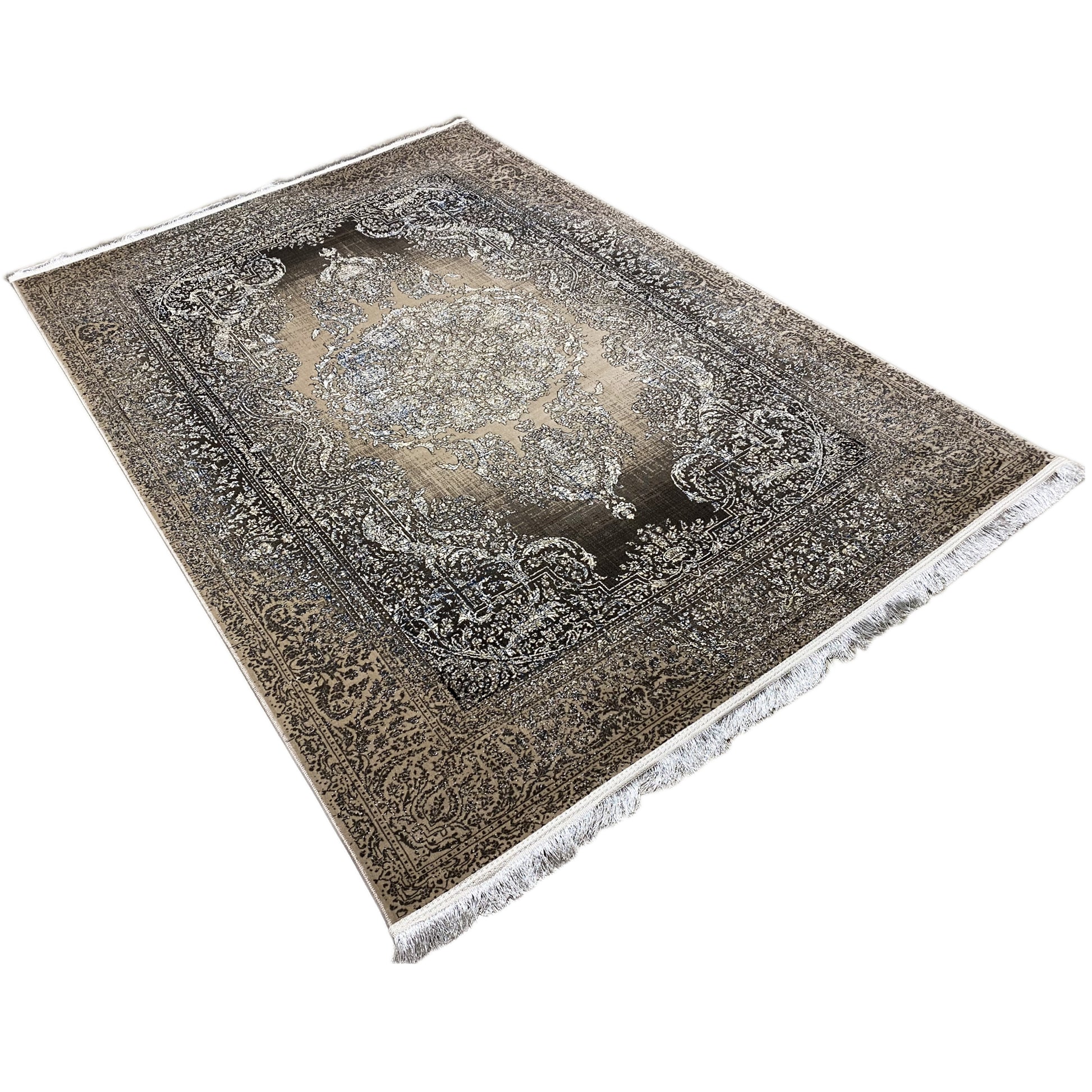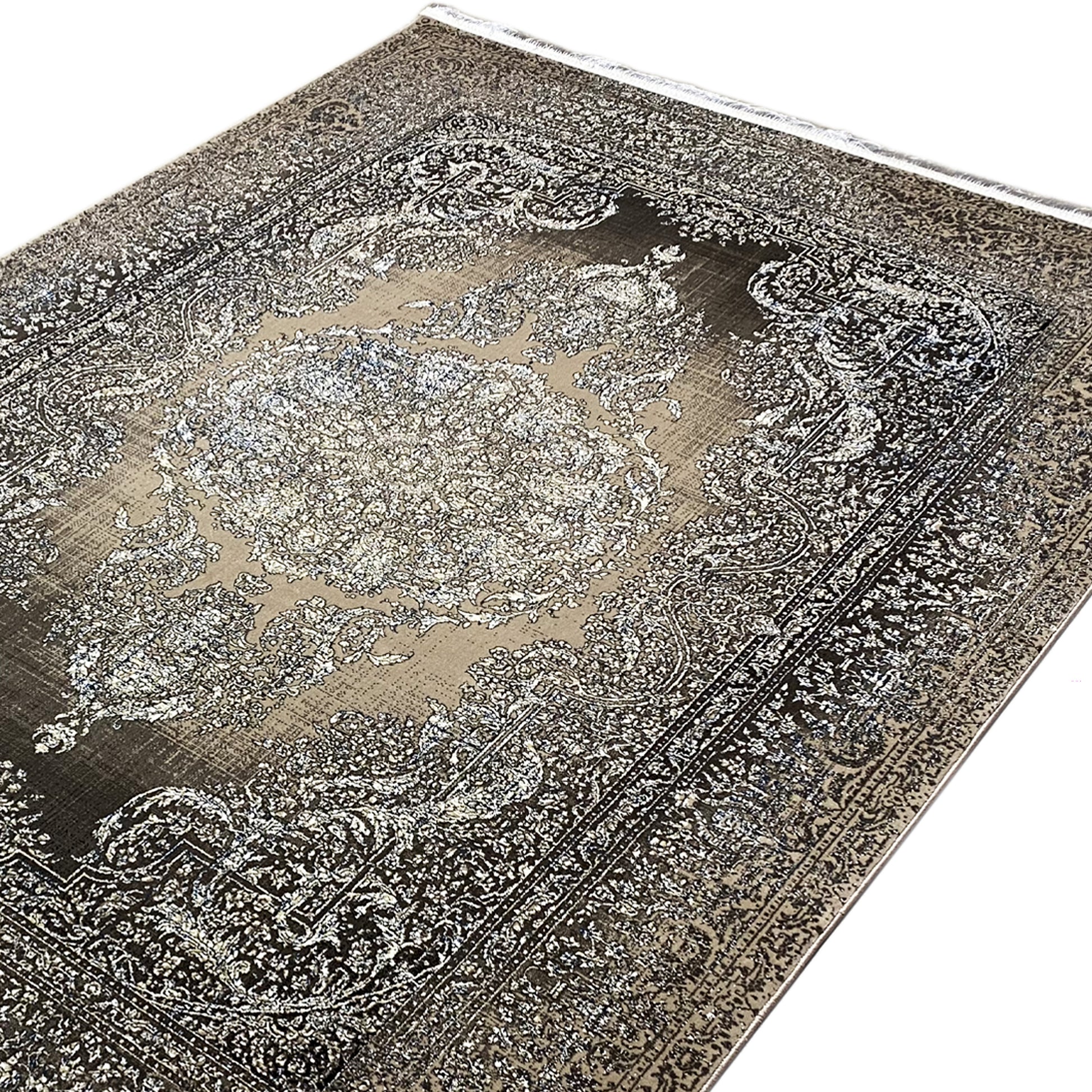 Add a touch of timeless elegance to your home with this beautiful classic rug. The artistic central medallion and the detailed pattern in shimmering silver and blue tones stand out against a smoky, subtly faded background. Made from 100% heat-treated acrylic, this soft and durable rug is perfect for high-traffic areas, combining luxurious style with modern resilience. The generous size of 170x240cm is ideal for adding an elegant focal point to your living or bedroom.