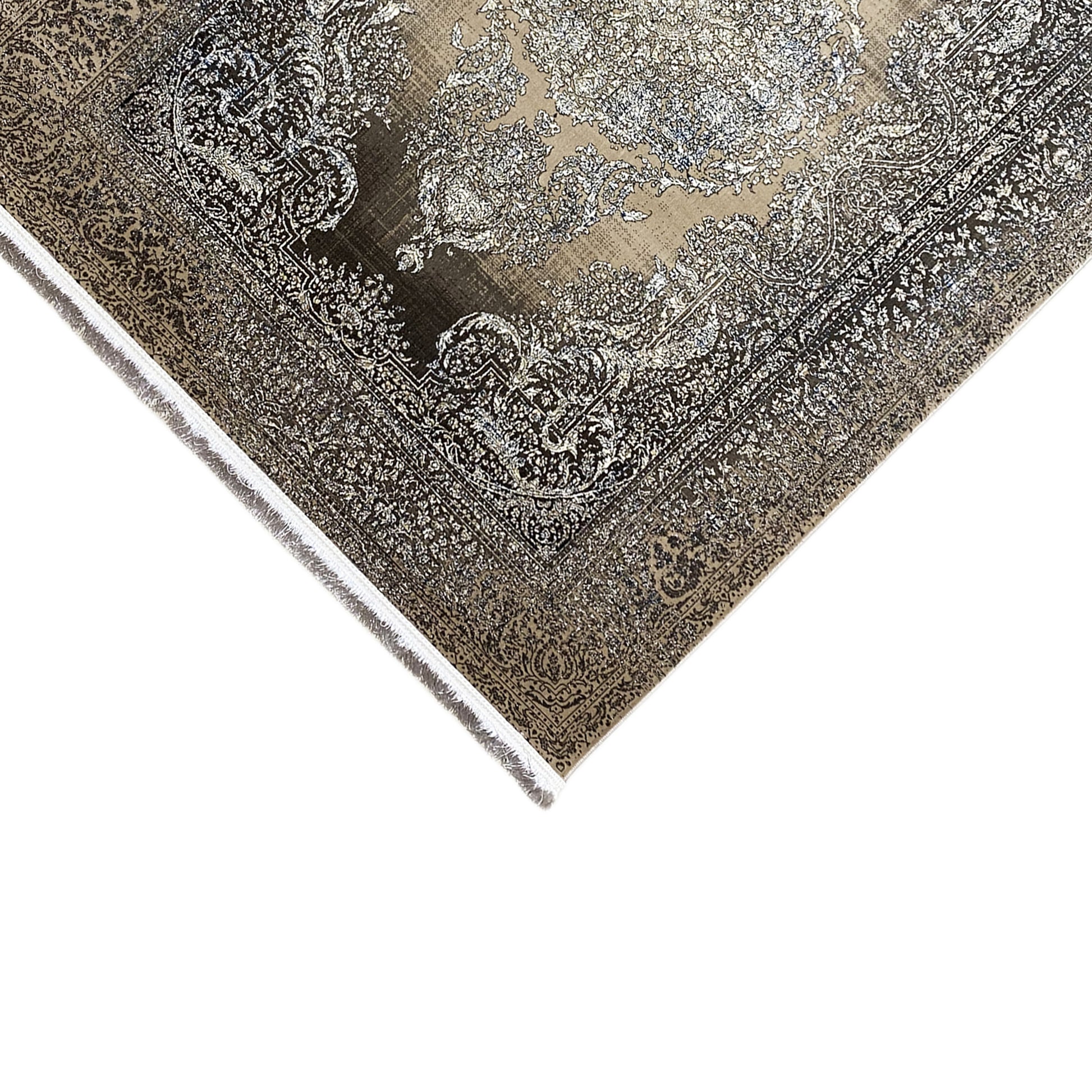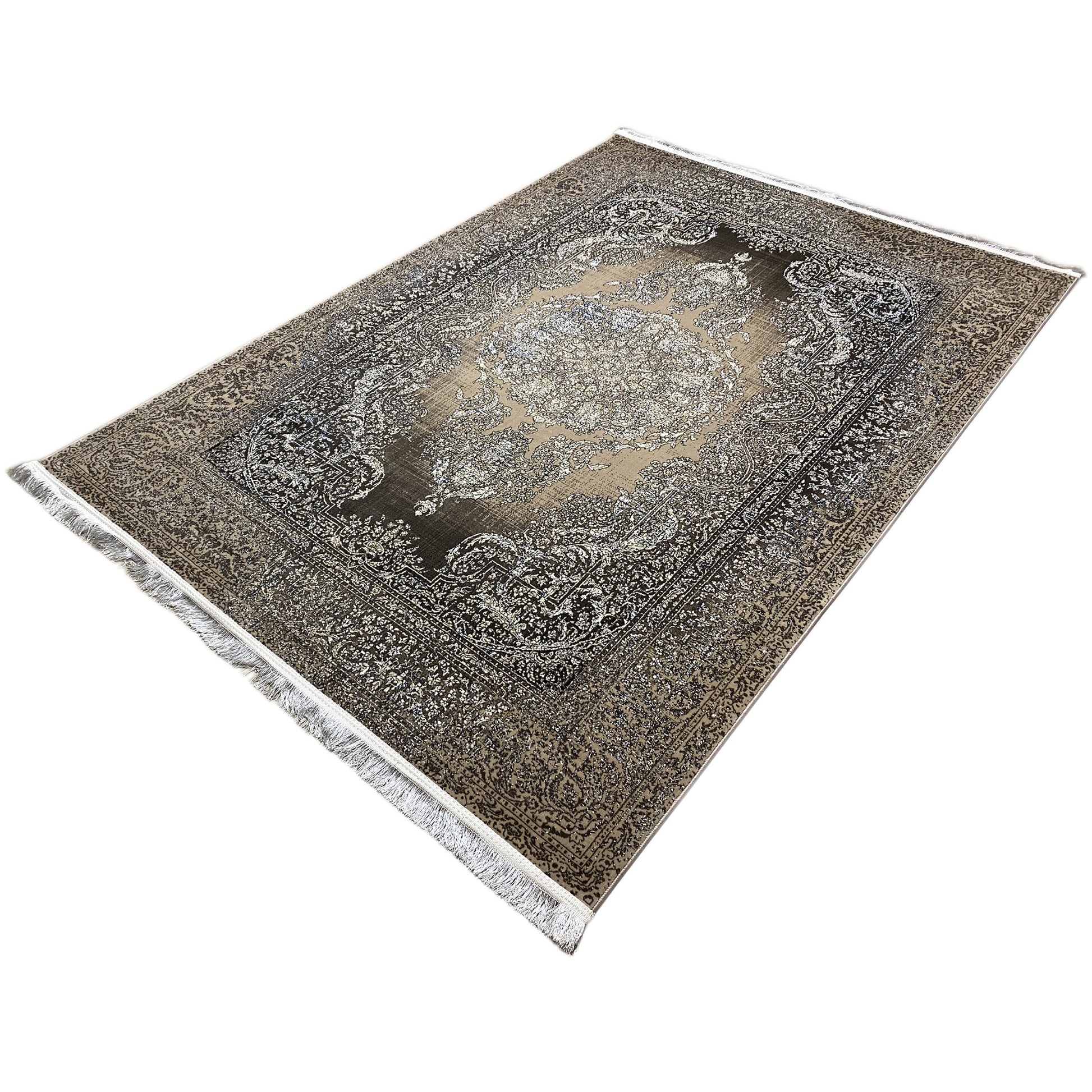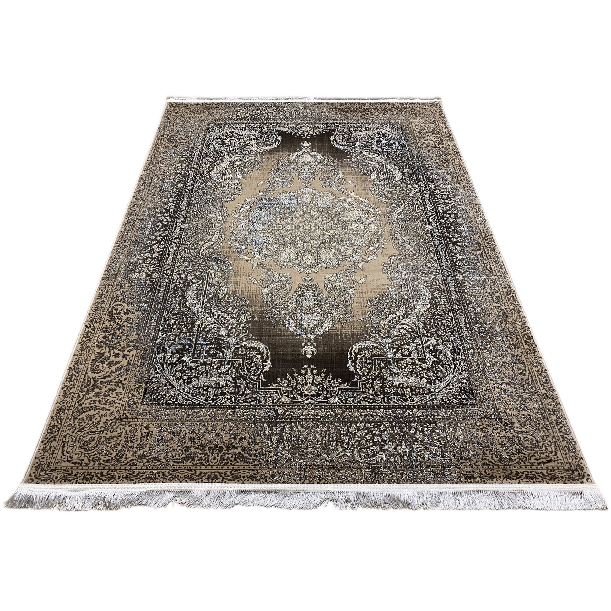 Add a touch of timeless elegance to your home with this beautiful classic rug. The artistic central medallion and the detailed pattern in shimmering silver and blue tones stand out against a smoky, subtly faded background. Made from 100% heat-treated acrylic, this soft and durable rug is perfect for high-traffic areas, combining luxurious style with modern resilience. The generous size of 170x240cm is ideal for adding an elegant focal point to your living or bedroom.